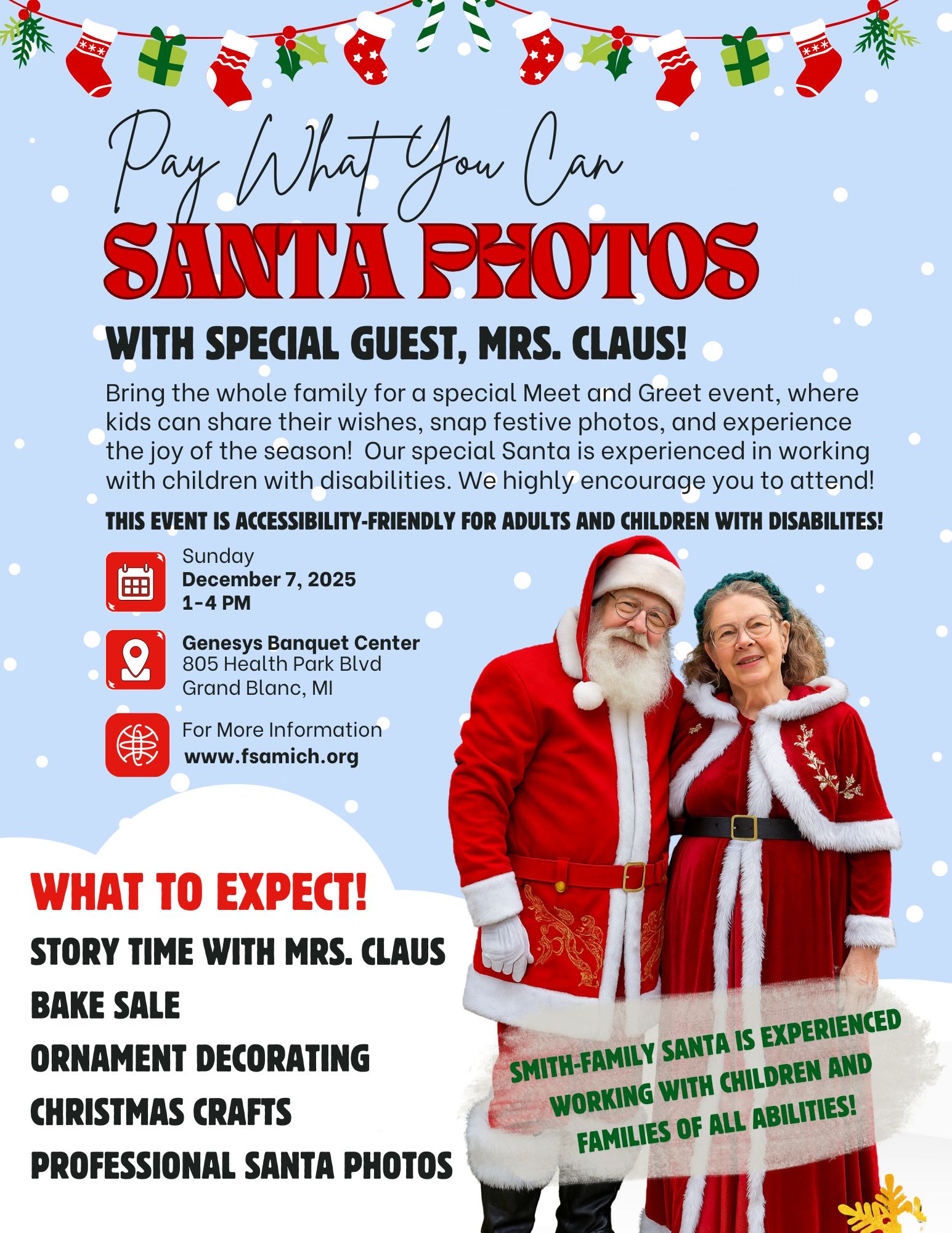 Accessibility-Friendly Professional Santa Photos with special guest, Mrs. Claus!
